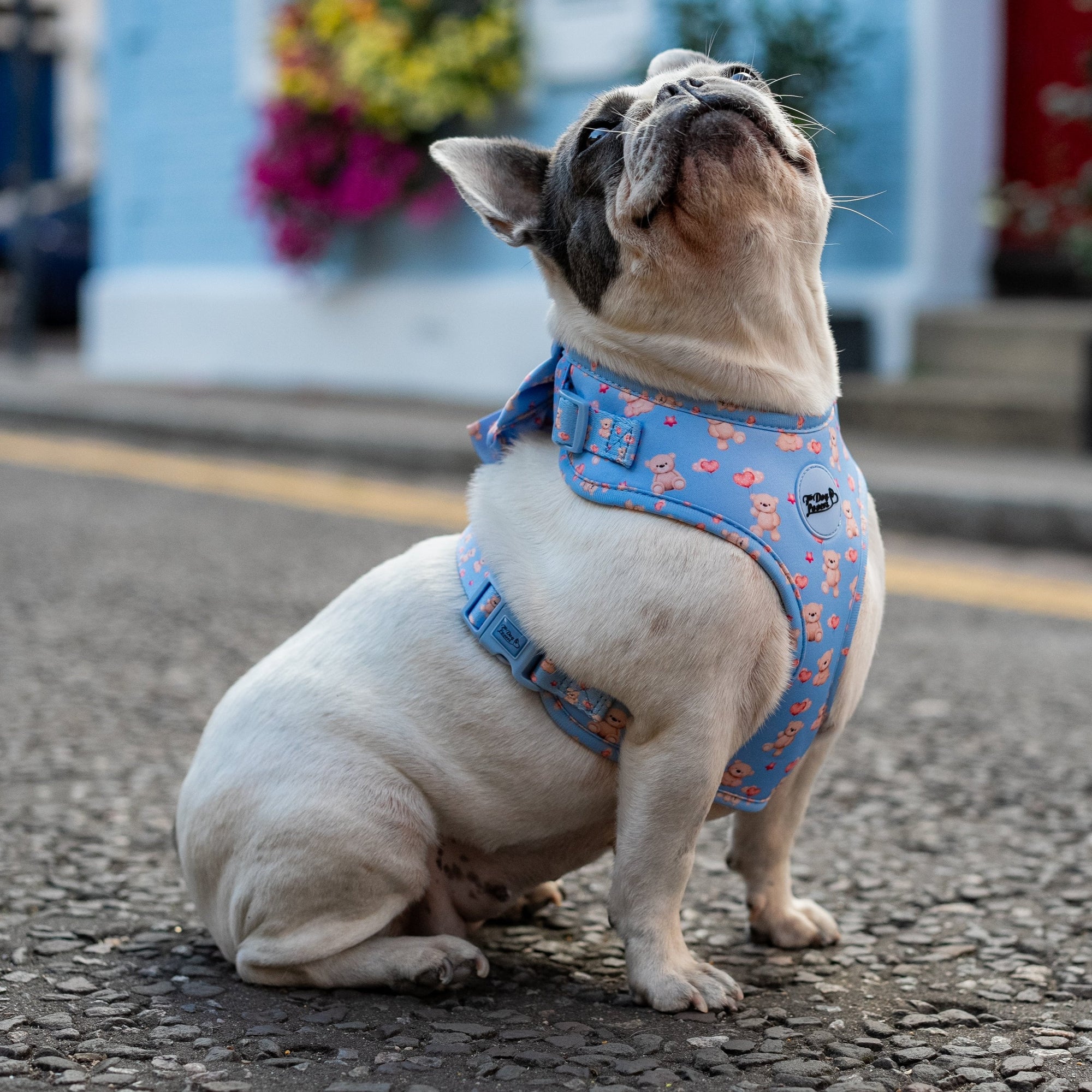 Give your pup the gift of cuddles with our "Everybody Needs A Teddy Bear" collection! This adorable design, inspired by the love for teddy bears, features a warm blue background that radiates simplicity and cheerfulness. Perfect for both boy and girl pups, this pattern will bring a touch of nostalgic charm and comfort to any Pup's wardrobe. Whether it’s a casual walk in the park or a formal stroll in the city, your Pooch will feel loved and stylish.