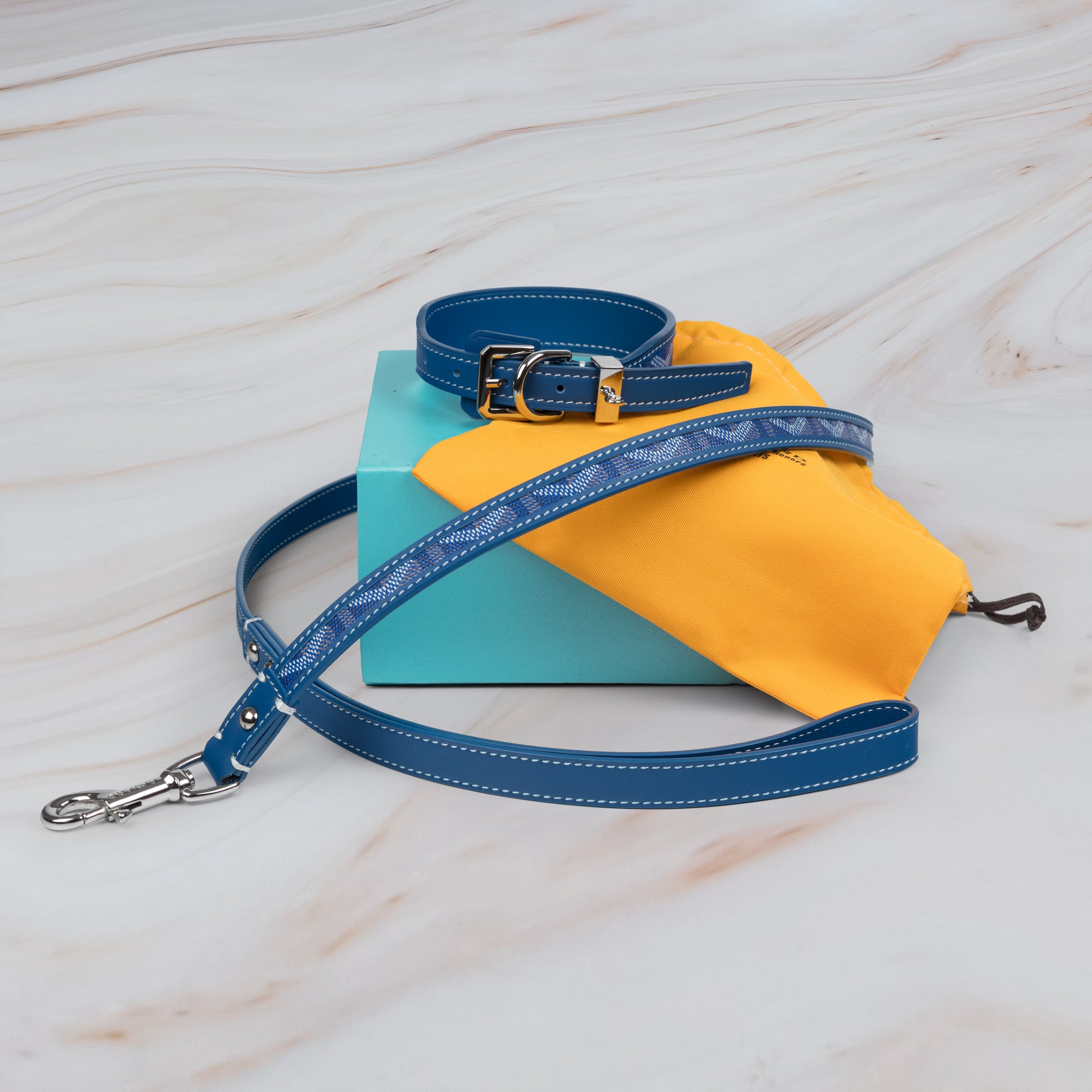 Each set/piece arrives in a beautifully crafted gift box and bag - also perfect for gifting or travel. Made from genuine leather and high-finish materials for the ultimate in 4-legged fashion. Treat your Pooch with this amazing outfit and let them stand out in the crowd!